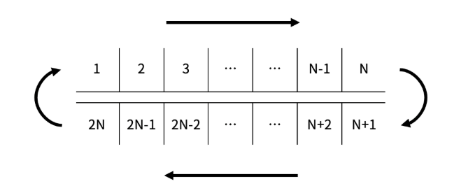 보자마자 구현문제라고 생각을 했다. 전체 길이 2N의 컨베이어에서 1번은 로봇이 올라가는 위치, N번은 로봇이 내려가는 위치이다.